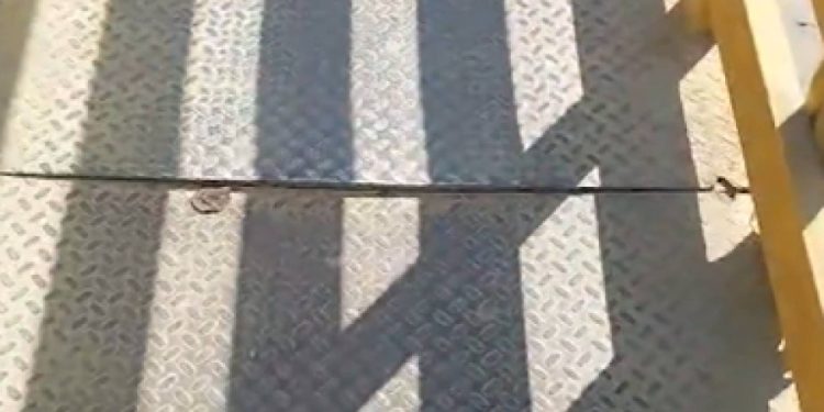 الفيديو كشف عن تباعد ألواح الحديد (الصاجات) في أرضية الجسر بمسافات كبيرة. هذه الفراغات تسمح للمارة برؤية الشارع الرئيسي أسفل الجسر بشكل مباشر.
