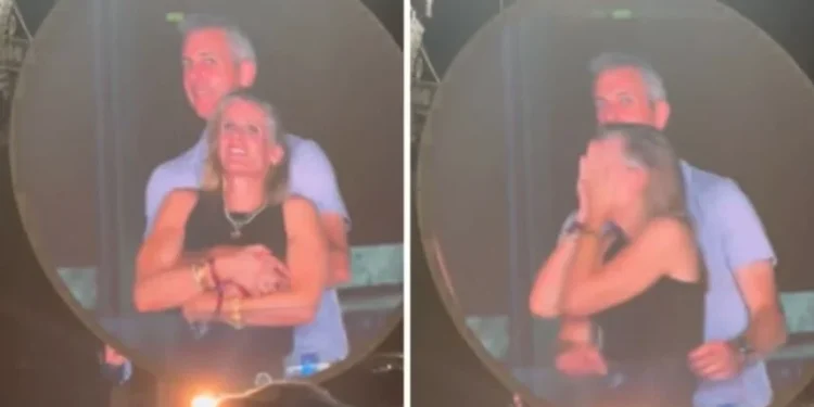 @10newsau Two tech executives of a software company have been caught on the big screen in an alleged cheating scandal after being spotted together on a kiss camera during a Coldplay show in Boston. Viral footage shows the venue’s camera panning to Astronomer CEO Andy Byron and his company’s Chief People Officer Kristin Cabot, mid-embrace during the band’s July 16 show at Gillette Stadium in Massachusetts, before the man ran off and the woman turned her back to the camera. Frontman Chris Martin joked from the stage, “Either they’re having an affair or they’re just very shy.” #10news #coldplay #andybyron #kisscam ♬ original sound – 10 News