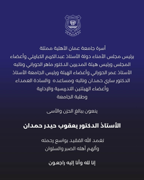 الأستاذ الدكتور يعقوب حيدر حمدان