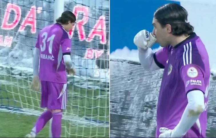 فقد التقطت الكاميرات حارس مرمى نادي إيرزوروم سبور، ماتيا أوربانيك، وهو يحتسي الشاي خلال المباراة لتدفئة نفسه من البرد القارس، حيث أظهرت الصور المتداولة تساقطا كثيفا للثلوج وتجمعها على أرضية الملعب.
