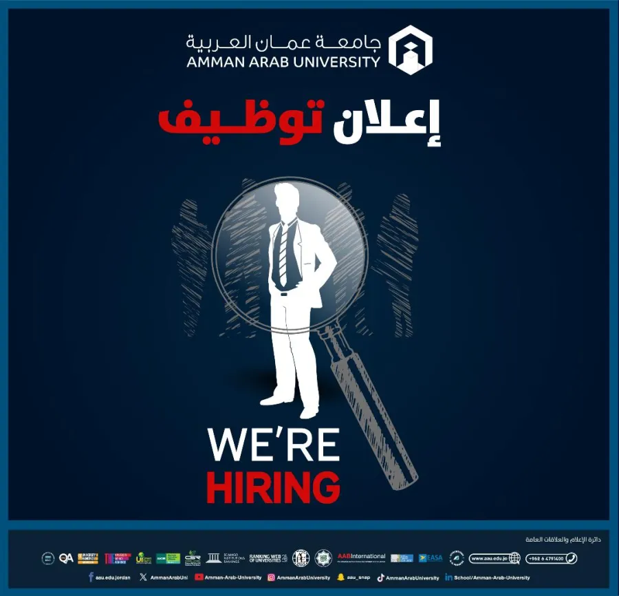 تعلن جامعة عمان العربية عن حاجتها لتعيين أعضاء هيئة تدريسية من حملة درجة الدكتوراه للفصل الدراسي الثاني للعام الجامعي 2025-2026