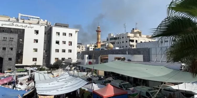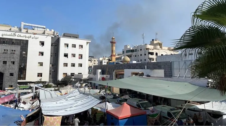 و أن آلاف النازحين لجأوا إلى المستشفى خلال الأسابيع الماضية من المناطق الشرقية لمدينة غزة بعد أن توغلت الدبابات الإسرائيلية في أجزاء منها.