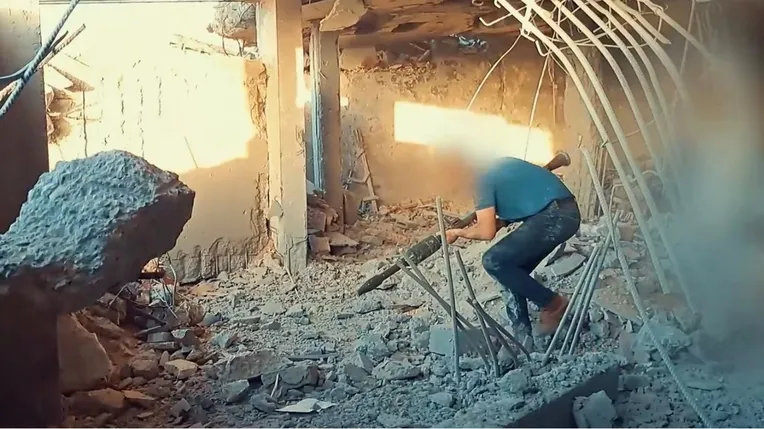 ويظهر في المشاهد كمين نصبه مقاتلو كتاب القسام لقوة إسرائيلية كانت تخرج من باب أحد المنازل، قبل أن يعاجلوها بقذيفة مضادة للأفراد من طراز “105”، ثم يشتبكوا معها بالأسلحة الخفيفة من مسافة قريبة، مؤكدين إيقاع القوة بين قتيل وجريح.