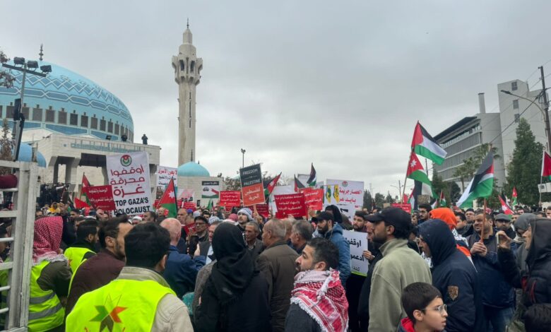 وفي العاصمة عمّان، انطلقت مسيرة من أمام المسجد الحسيني تطالب بوقف الإبادة الجماعية في غزة وقتل الأطفال والنساء.