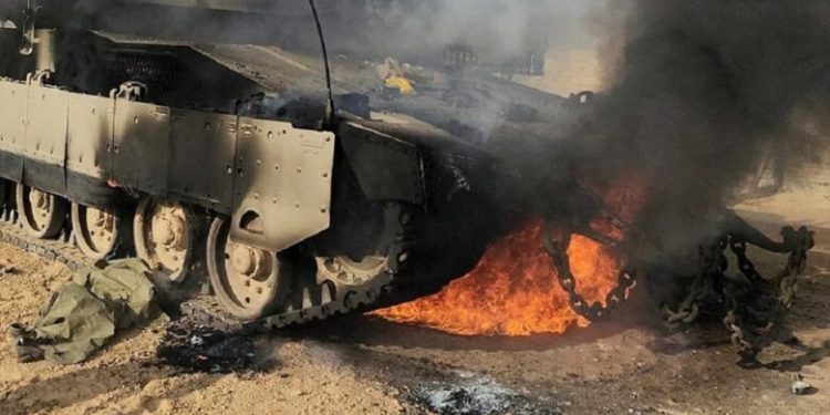 أعلنت المقاومة الفلسطينية اليوم السبت، تدمير ناقلة جند للاحتلال الاسرائيلي بشكل كامل، شمال مخيم البريج وسط قطاع غزة بقذيفة “الياسين 105”.