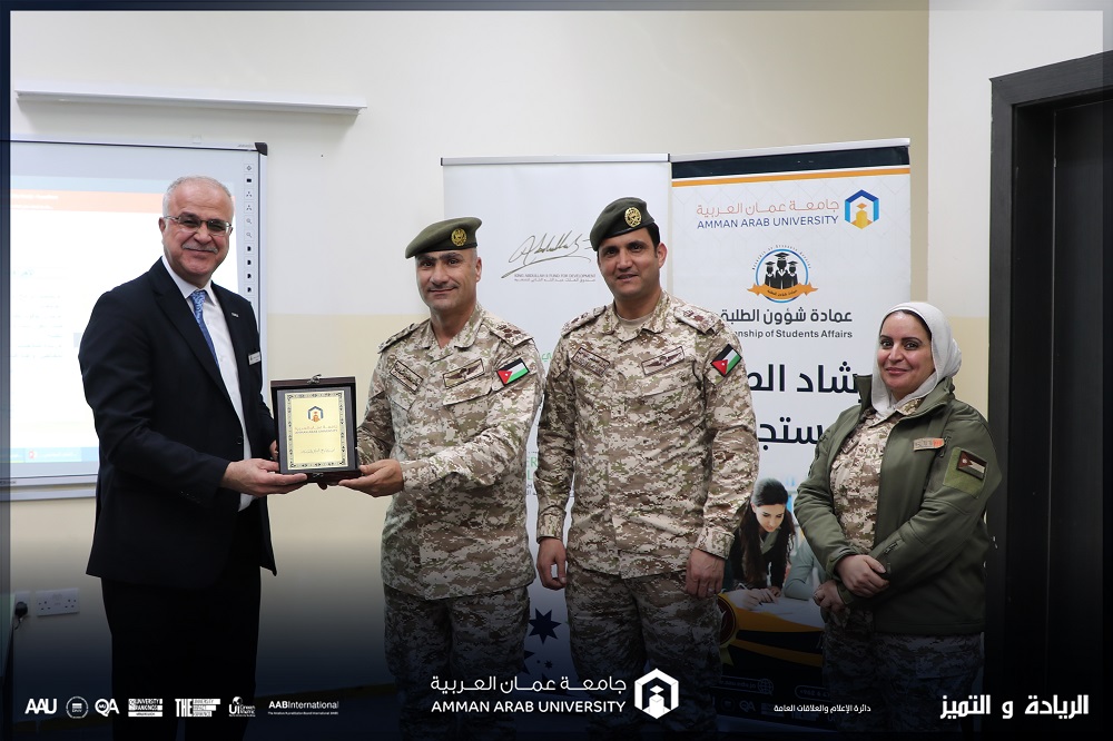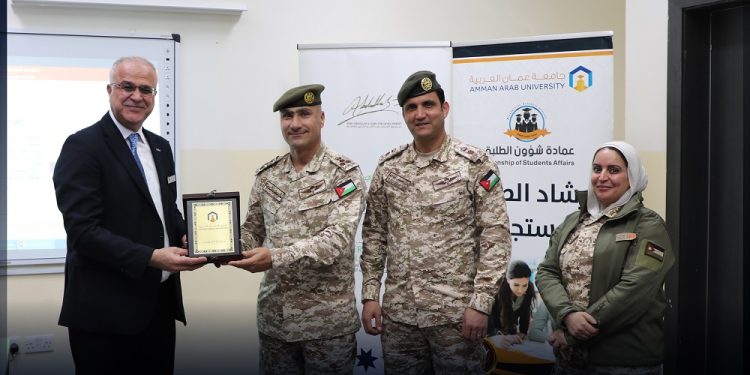 نظمت عمادة شؤون الطلبة وبالتعاون مع كلية الآداب والعلوم/ شعبة العلوم العسكرية في جامعة عمان العربية محاضرة توعوية لطلبة الجامعة بعنوان “العنف الجامعي” قدمتها النقيب آمنة حمدو الحباشنة/ شعبة العلوم العسكرية بحضور كل من: العميد خالد محمود الشمايلة / رئيس دائرة التعليم الجامعي، والمقدم الركن يزن الهياجنة.