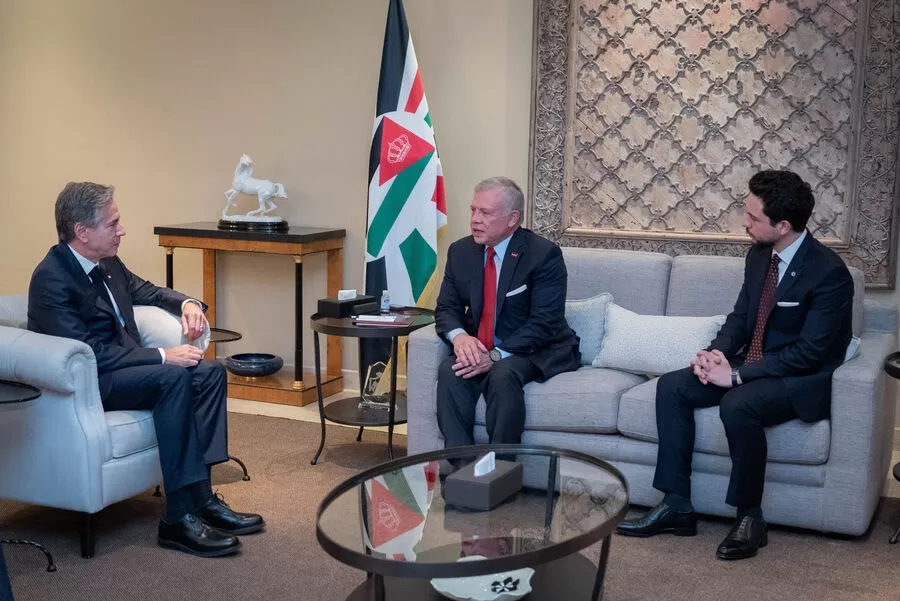 حذر جلالة الملك عبدالله الثاني لدى لقائه وزير الخارجية الأمريكي أنتوني بلينكن، اليوم الأحد، من التداعيات الكارثية لاستمرار العدوان على غزة، مشددا على ضرورة وضع حد للأزمة الإنسانية المأساوية في القطاع.