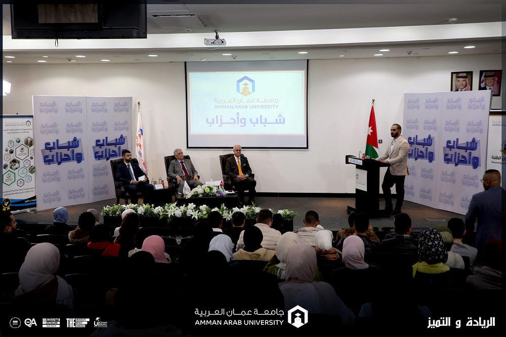 استضافت جامعة عمان العربية / عمادة شؤون الطلبة وبالتعاون مع التلفزيون الأردني برنامج (شباب وأحزاب)، الذي تم تصويره وبثه من رحاب الجامعة بمشاركة كل من: الأستاذ الدكتور خالد بني حمدان عميد شؤون الطلبة والأستاذ الدكتور نعمان الخطيب أستاذ القانون الدستوري في جامعة عمان العربية وعضو المحكمة الدستورية سابقاً، والطالب محمد العزام من كلية القانون – كتجربة حزبية شبابية، حيث تم بث الحلقة على شاشة التلفزيون الأردني يوم الجمعة الموافق 29/12/2023 الساعة (10:00) مساءً.