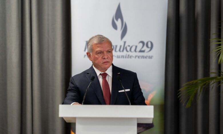 وقال جلالته في كلمته “علينا أن نتمسك بإنسانيتنا حتى نتجنب الوقوع في الهاوية”.
