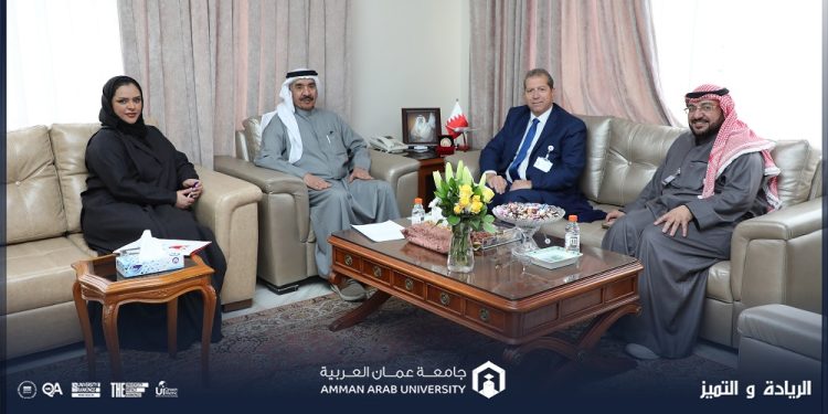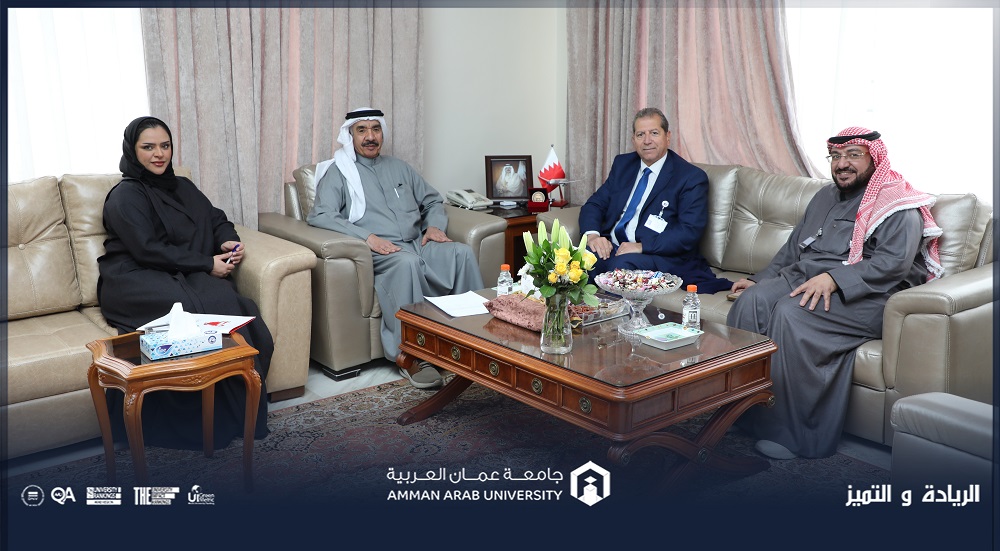 زار رئيس جامعة عمان العربية الأستاذ الدكتور محمد الوديان سفارة مملكة البحرين في المملكة الأردنية الهاشمية، حيث كان في استقباله سعادة السفير السيد أحمد بن يوسف الرويعي وبحضور كل من الدكتورة مروة الجاسم / مستشار الملحق الثقافي في سفارة مملكة البحرين في الأردن، والدكتور متعب العتيبي رئيس لجنة استقطاب الطلبة القادمين من دول الخليج في جامعة عمان العربية، حيث جرى خلال اللقاء تسليط الضوء على الفرص التعليمية المتاحة في جامعة عمان العربية للطلبة، والجهود التي تبذلها الجامعة للارتقاء بعملية التعليم والتعلم عبر تخصصاتها وكلياتها وصولاً إلى التميز، فضلاً عن تجسيد روح الريادة والتميز لدى الطلبة وإعداد كوادر مؤهلة ومدربة تلبي متطلبات وحاجات الأسواق العالمية والمحلية .