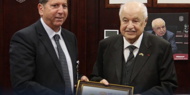 وبهذه المناسبة قدم الدكتور الوديان التهاني للدكتور أبو غزالة ونقل له تحيات رئيس وأعضاء الشبكة الإقليمية للمسؤولية الاجتماعية، حيث بيّن الوديان بأنه وبصفته رئيساً لجامعة عمان العربية وهي الممثل الحصري للشبكة الاقليمية للمسؤولية الاجتماعية في المملكة الأردنية الهاشمية قد تم تشريفي من قبل الشبكة لتسليم سعادتكم وثيقة التميز الدولية للشخصيات الأكثر تأثيراً في مجال المسؤولية الاجتماعية للعام 2023، وذلك خلال لقاء حضره مجموعة من مدراء ومستشاري مجموعة طلال أبو غزالة ومستشار المسؤولية المجتمعية في جامعة عمان العربية السيد بسام البشايرة.